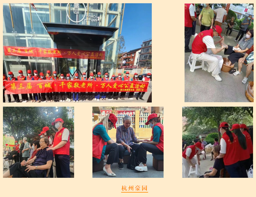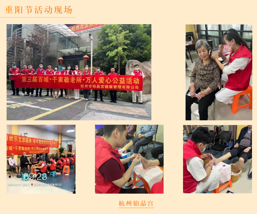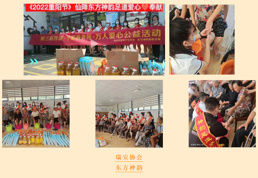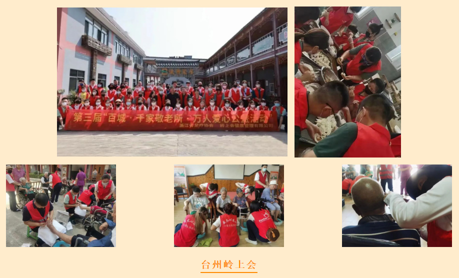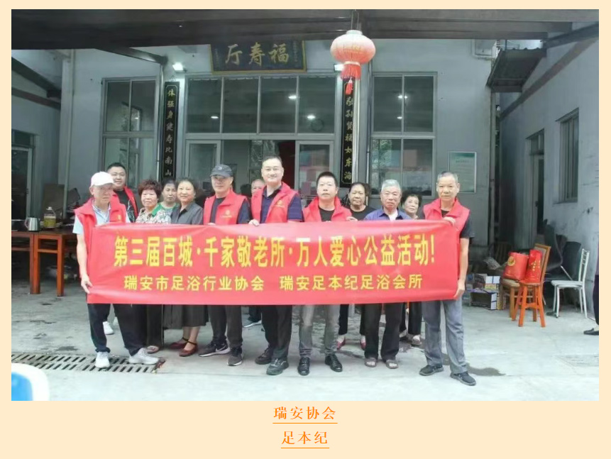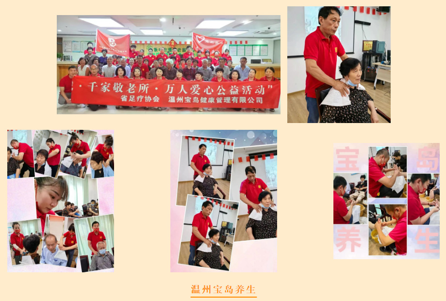 “岁岁重阳,今又重阳”,秋高气爽,国庆佳节之际,我们迎来了老人们传统节日---九九重阳节。为响应商务厅共同富裕召开、为弘扬中华民族敬老、爱老、助老的传统美德,献礼二十大,由浙江省足疗沐浴养生行业协会牵头,联合杭州、宁波、温州、绍兴、嘉兴、衢州、金华、湖州、瑞安、乐清、苍南、萧山、富阳、桐庐、嵊州等省内各地协会共同发起,声势浩大的爱心公益活动---第三届“百城·千家敬老所·万人爱心公益活动”,像一股爱的暖流在浙江大地涌动,徐徐拉开序幕。